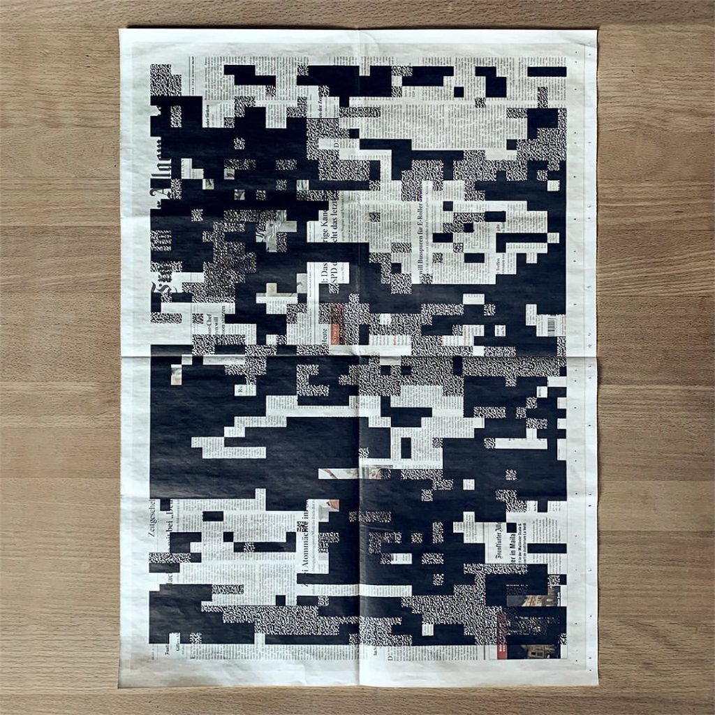 In Partick’s project, he responds to the ambiguity of truth in the digital age by attaching electronic patterns to newsprint in the form of screen prints. So I took the opposite approach in my next work.