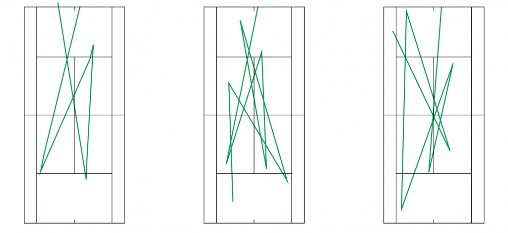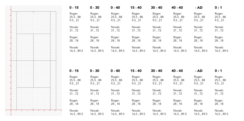 Then, I further removed the dynamics of the ball. I drew a grid to position the landing points of each ball and annotated their positions next to them.